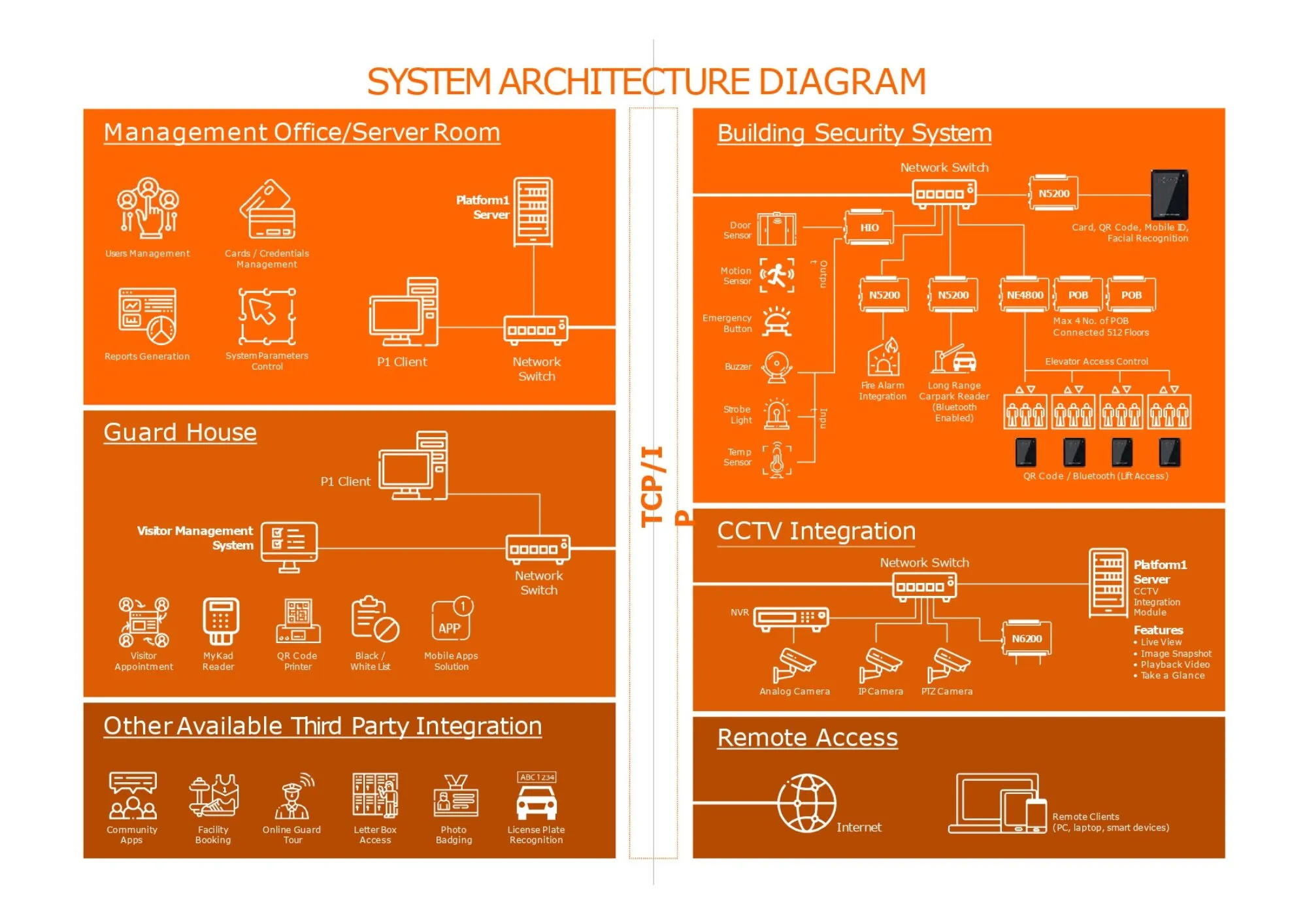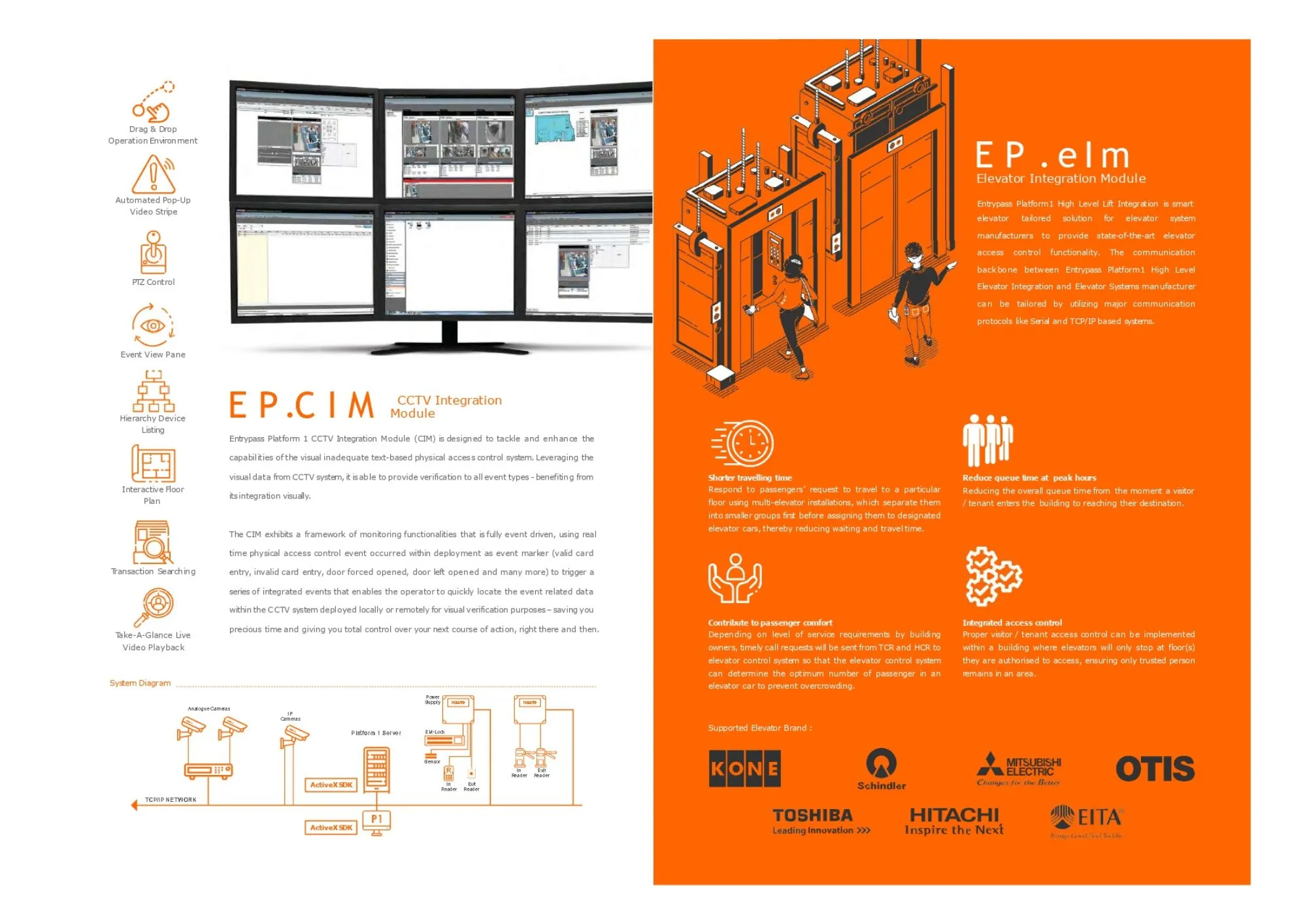 a. All-in-One Intelligent Security PlatformEntrypass delivers a unified, scalable, and future-ready security ecosystem that seamlessly integrates access control, CCTV, elevators, visitor management, AI video analytics, and automation—providing total visibility, real-time response, and complete control across single or multi-site environments.