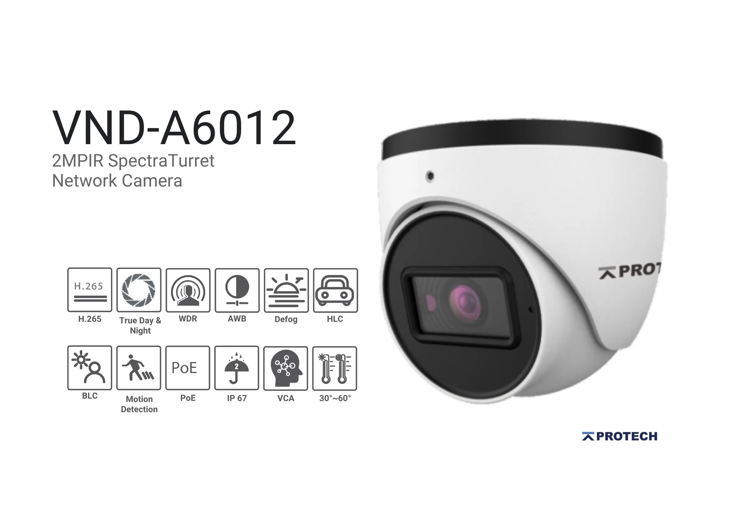 • 3D DNR, true WDR, HLC, BLC, Defog, Smart IR and ROI coding