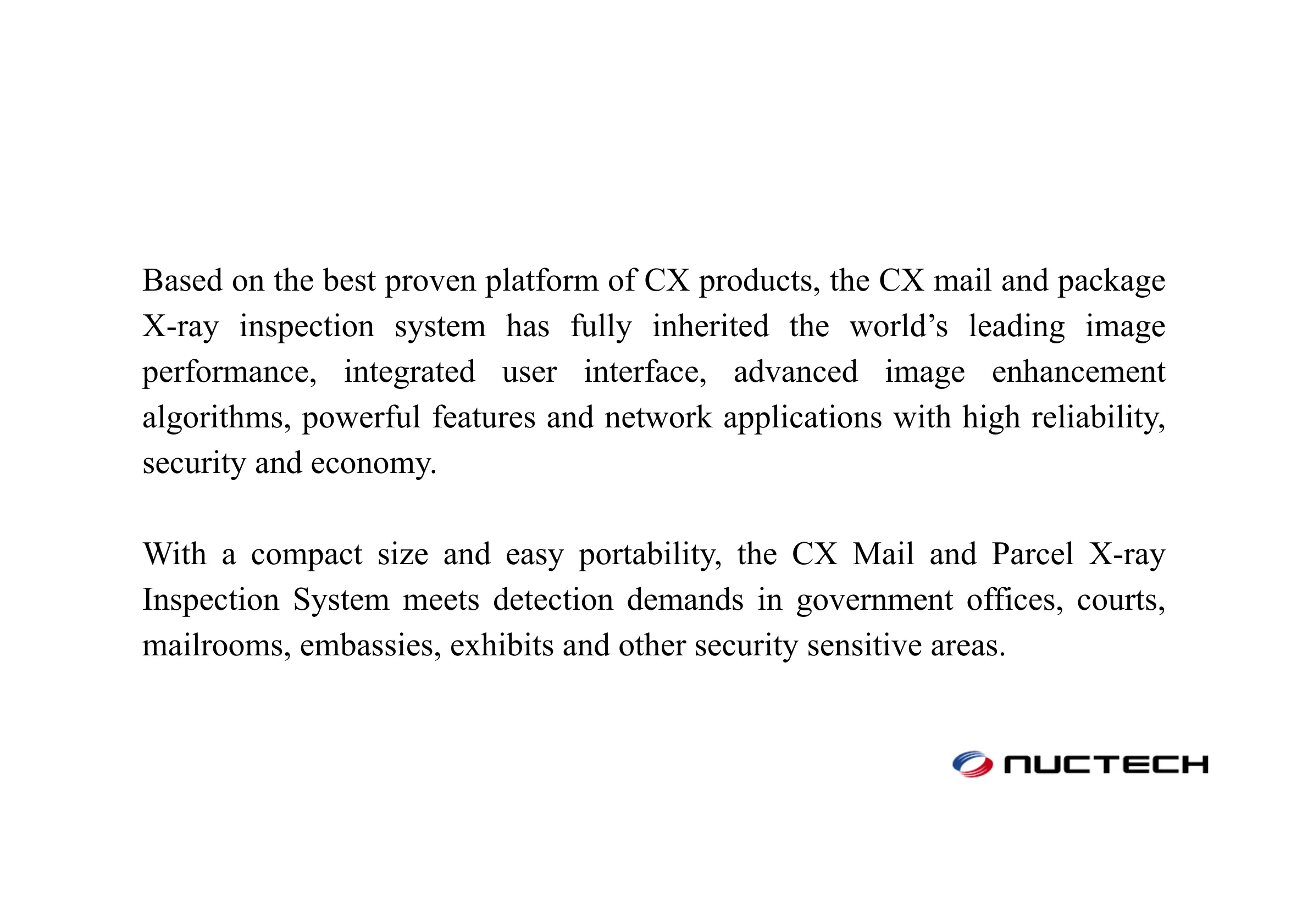 4. Operator Efficiency and Training Support, Includes TIP (Threat Image Projection) for training and performance monitoring, plus an ergonomic interface and image export options (BMP, JPG, PNG, TIFF, USB transfer) to streamline workflow