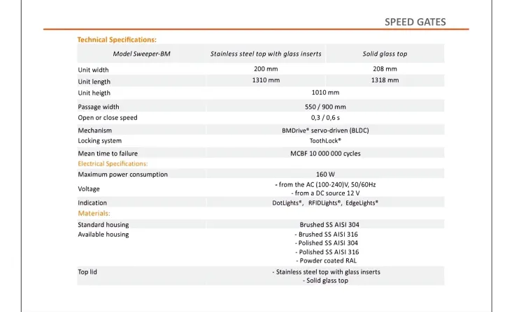• The safety function of locking system BMDrive® prevents the glass leaf breaking in case of vandalism, and also automatically restores the full operation of turnstile after excessive loads on the leaf;